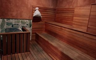 Dry sauna is made of Hinoki wood, containing antiseptic and antibacterial substances. This room is sealed to contain the heat with anti-virus herbs.